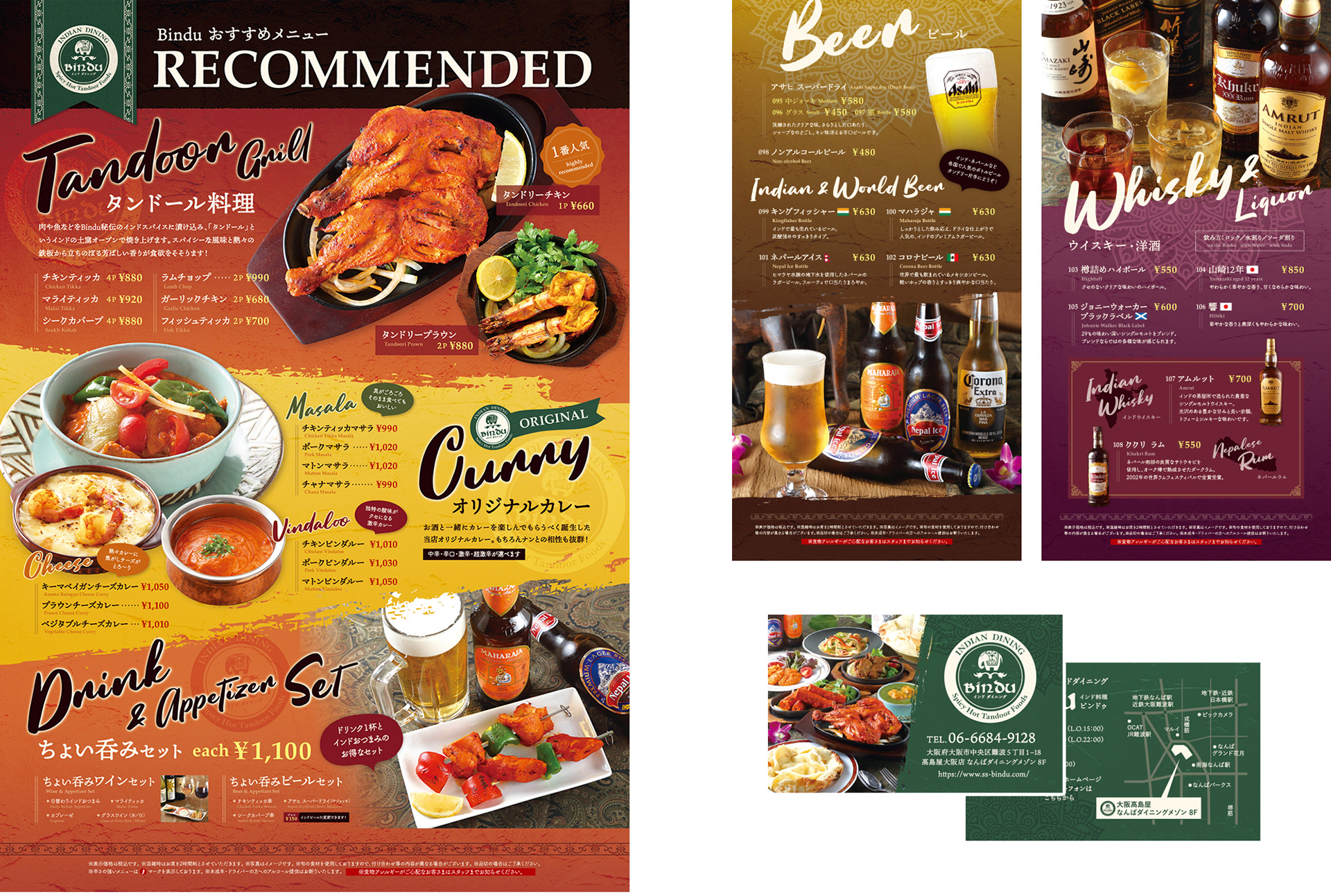 「インドダイニング Bindu」様 メニュー類・看板類・印刷物の制作