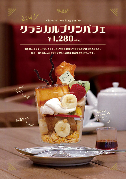 フルーツパーラー「GO・HO・U・BI PARLOR」様 プリンパフェのメニューデザイン・撮影ディレクション